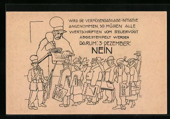 AK Schweiz, Nein zur Vermögensabgabe am 3.12.1922!, Steuervogt stempelt Wertschriften ab, Arbeiterbewegung