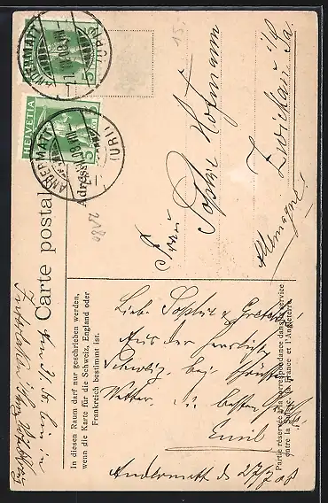 alte Ansichtskarte, gelaufen 1908, guter Zustand