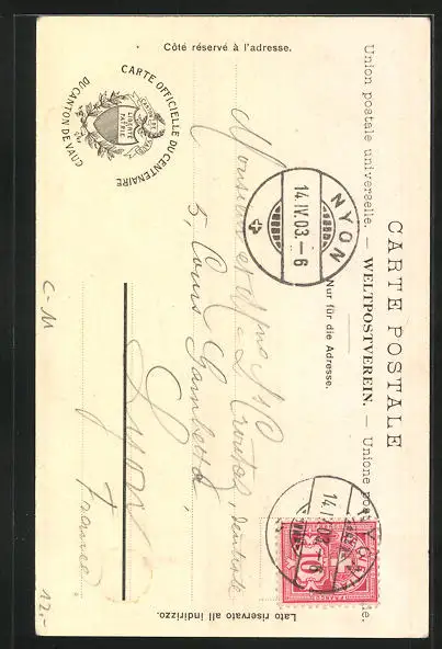 AK Schweiz, Souvenir du Centenaire Vaudois 1903, Liberté et Partie!, Soldat mit Trompete und Flagge