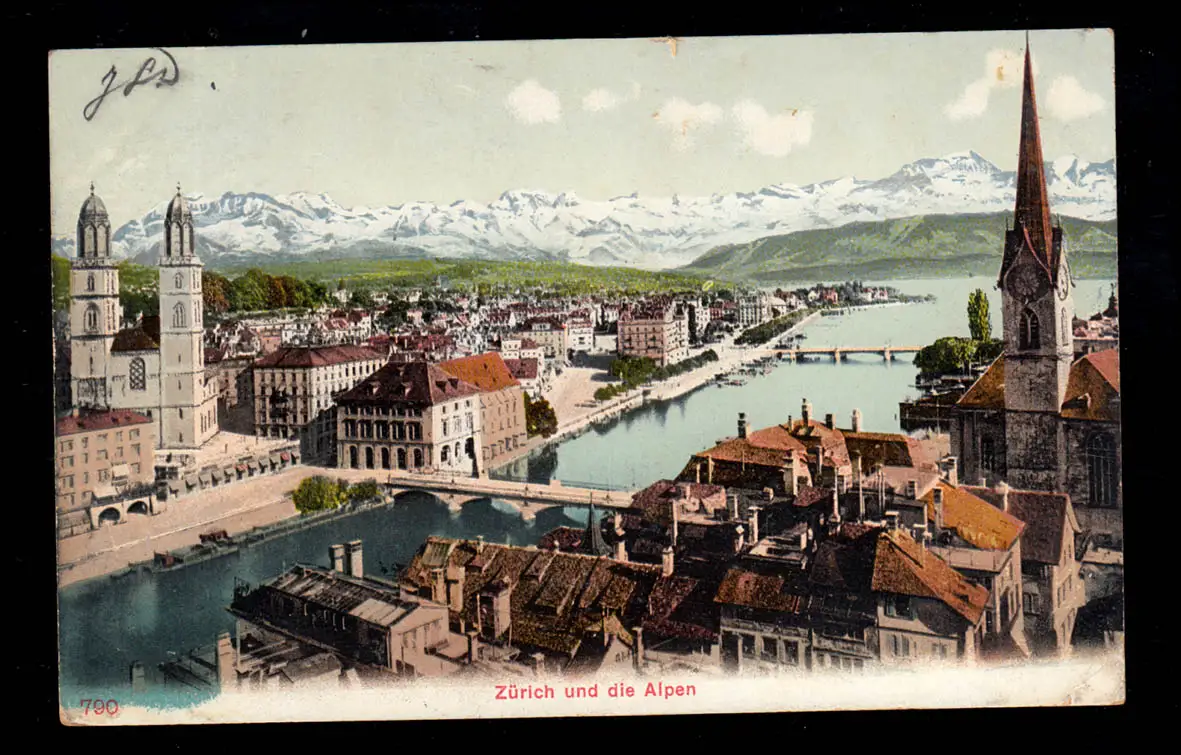 AK Schweiz: Zürich und die Alpen, ZÜRICH 9.4.1906 nach ZUID-SCHARWOUDE 11.4.06