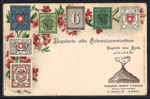 AK Schweiz, verschiedene Briefmarken mit Blumen dahinter