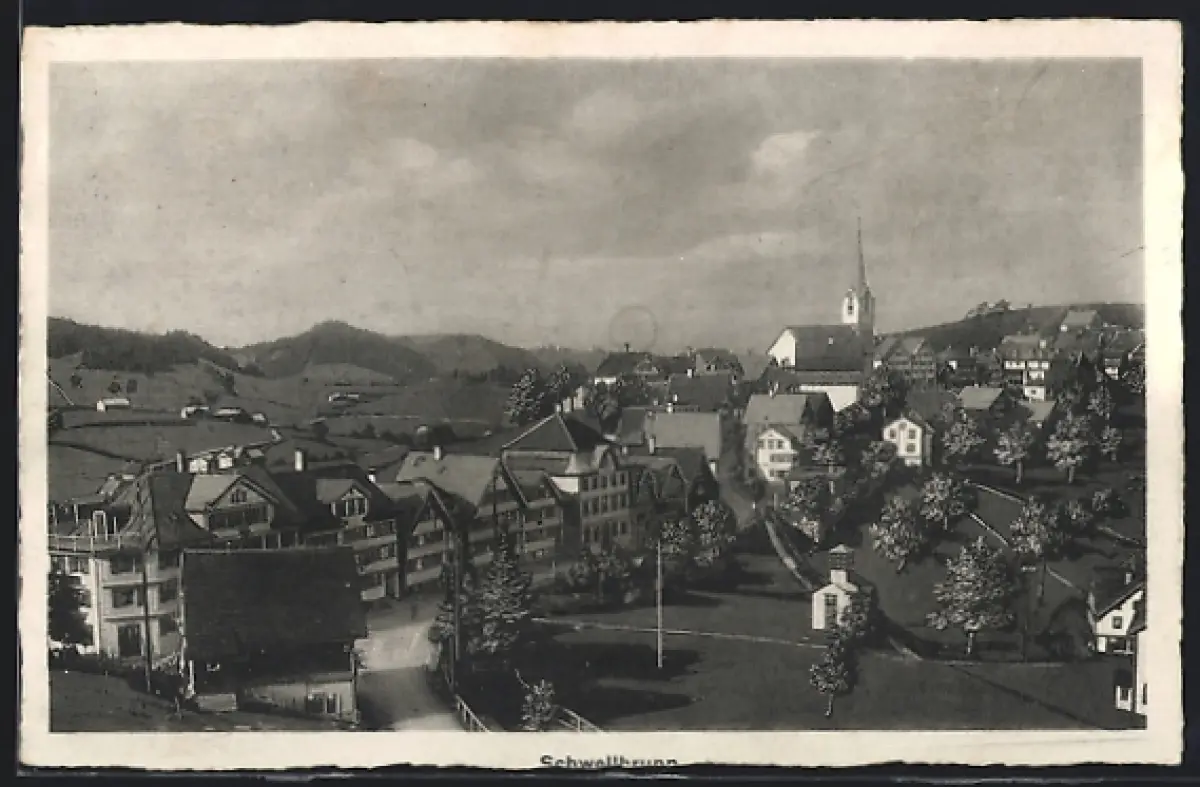AK Schwellbrunn, Strassenpartie mit Kirche