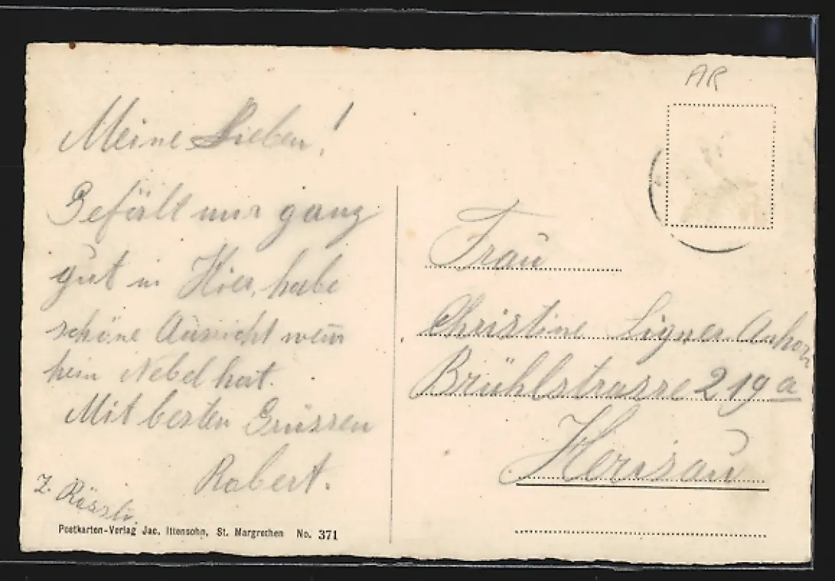 alte Ansichtskarte, gelaufen, Briefmarke entfernt, guter Zustand