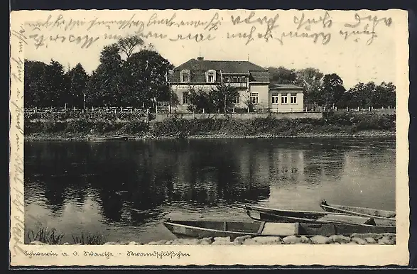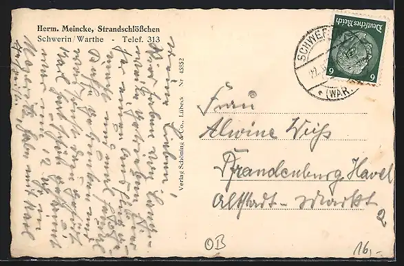 AK Schwerin /Warthe, Strandschlösschen v. Herm. Meincke
