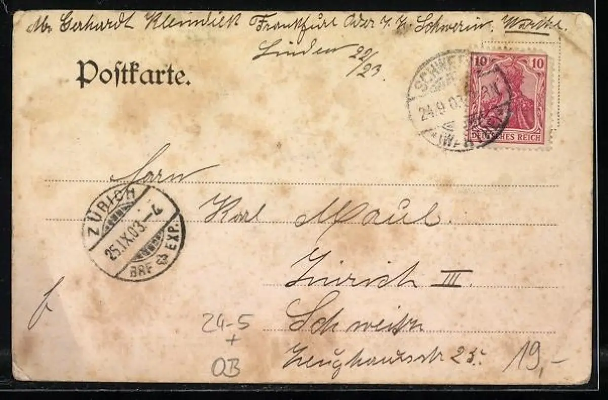 alte Ansichtskarte, gelaufen 1903, Eckknick li. unten, guter Zustand