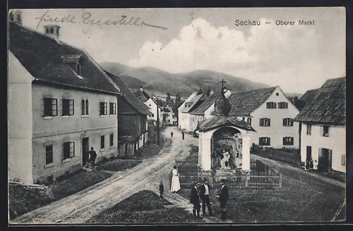 AK Seckau, Oberer Markt mit Gedenkstätte