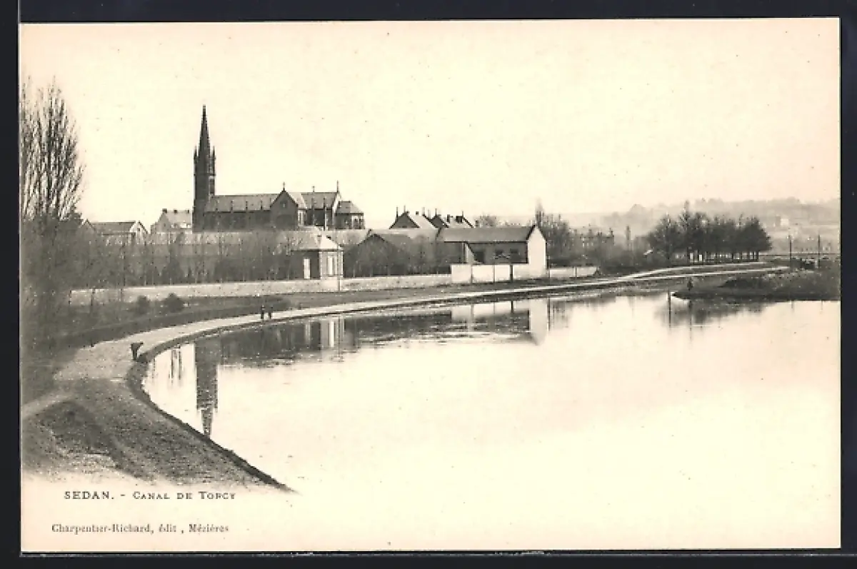 AK Sedan, Canal de Torcy et vue de l`église au bord de l`eau