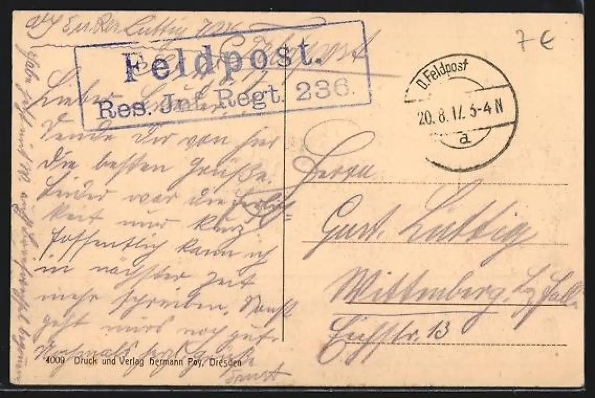 alte Ansichtskarte, gelaufen 1917, guter Zustand