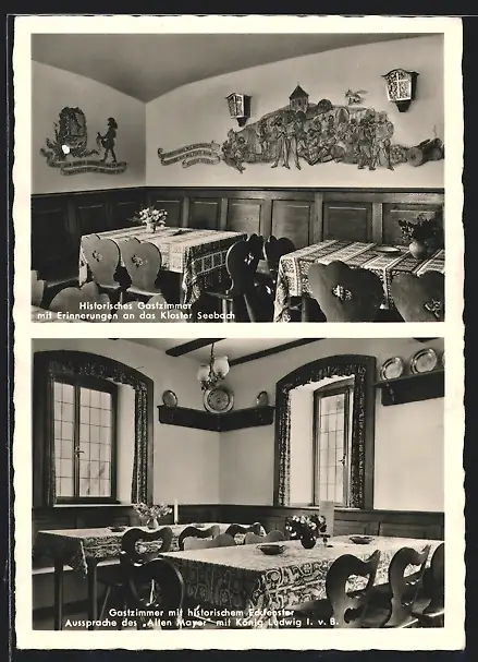 AK Seebach bei Bad Dürkheim, Gasthaus Weinstube zum Käsbüro, Ansichten historischer Gastzimmer