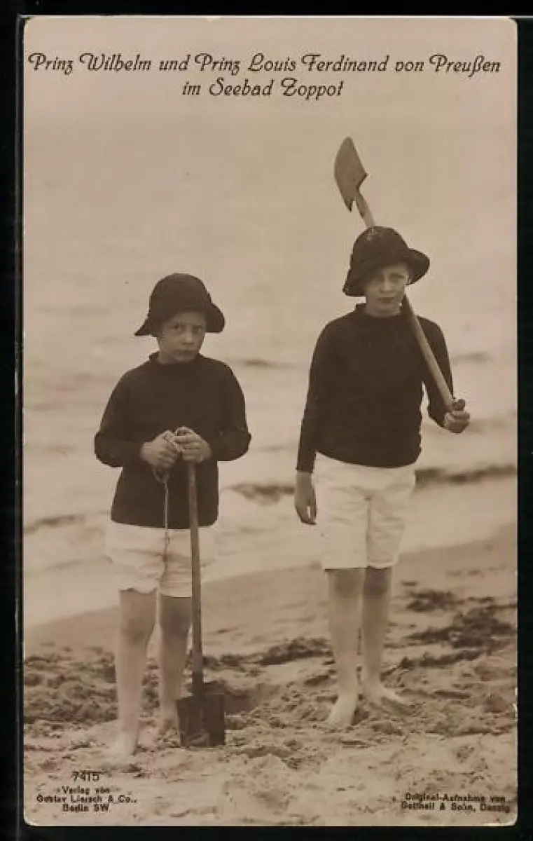 AK Seebad Zoppot, Kronprinz Wilhelm und Prinz Louis Ferdinand von Preussen am Strand
