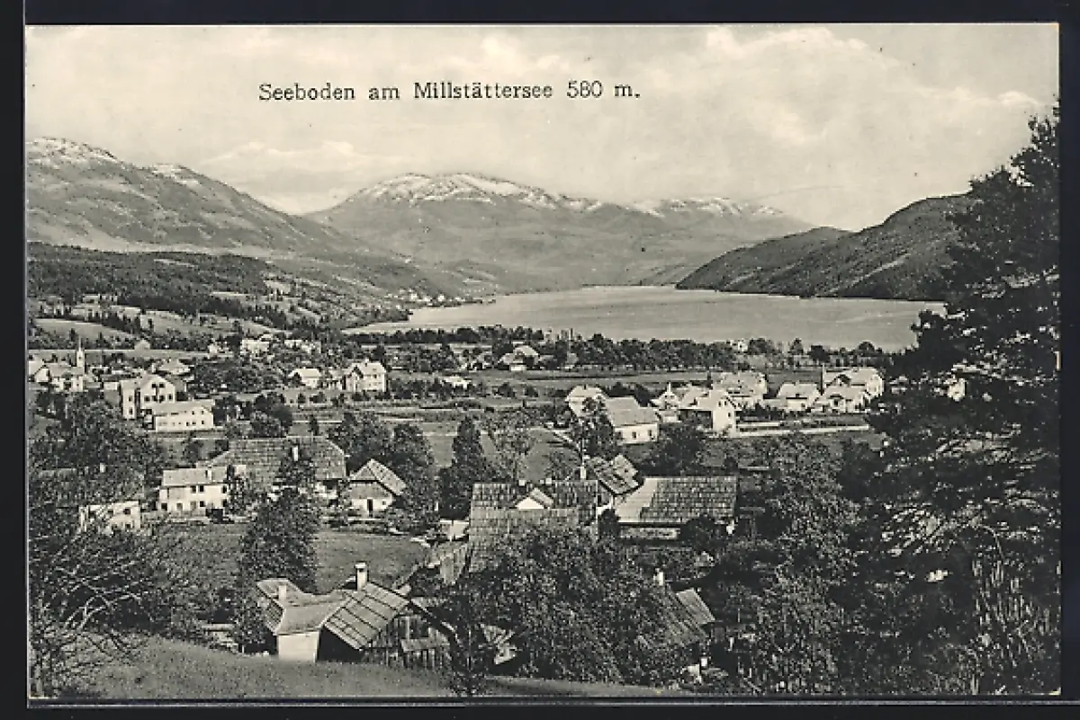 AK Seeboden am Millstättersee, Teilansicht mit Bergen