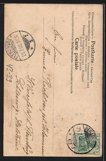 alte Ansichtskarte, gelaufen 1902, guter Zustand