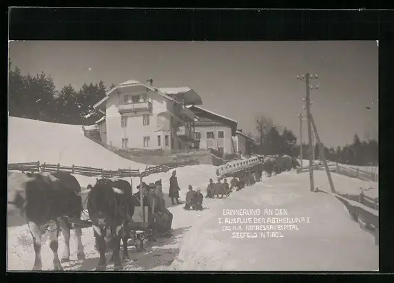 AK Seefeld i. Tirol, Erster Ausflug der Abteilung I des K. K. Notreservespital, Rotes Kreuz