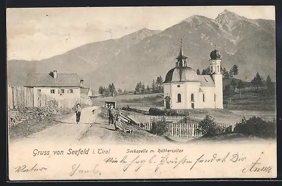 AK Seefeld i. Tirol, Seekapelle mit Reitherspitze
