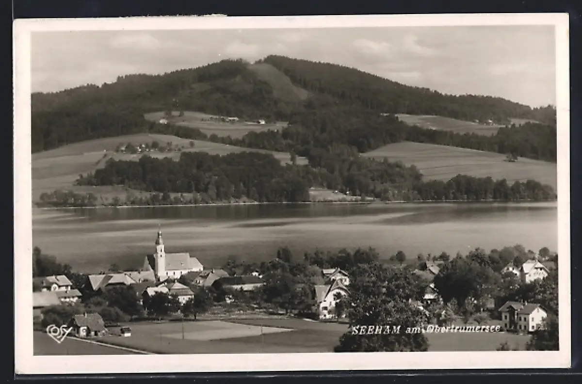AK Seeham, Ortsansicht mit Kirche am Obertrumersee