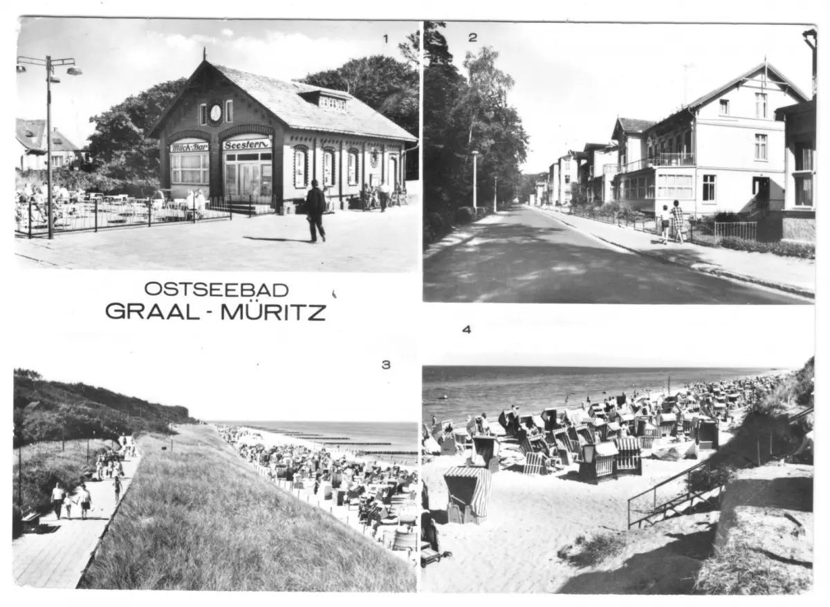AnsichtskarteSeeheilbad Graal-Müritzvier Abb.Milchbar "Seestern, Rosa-Luxemburg-Str., Strand (2)