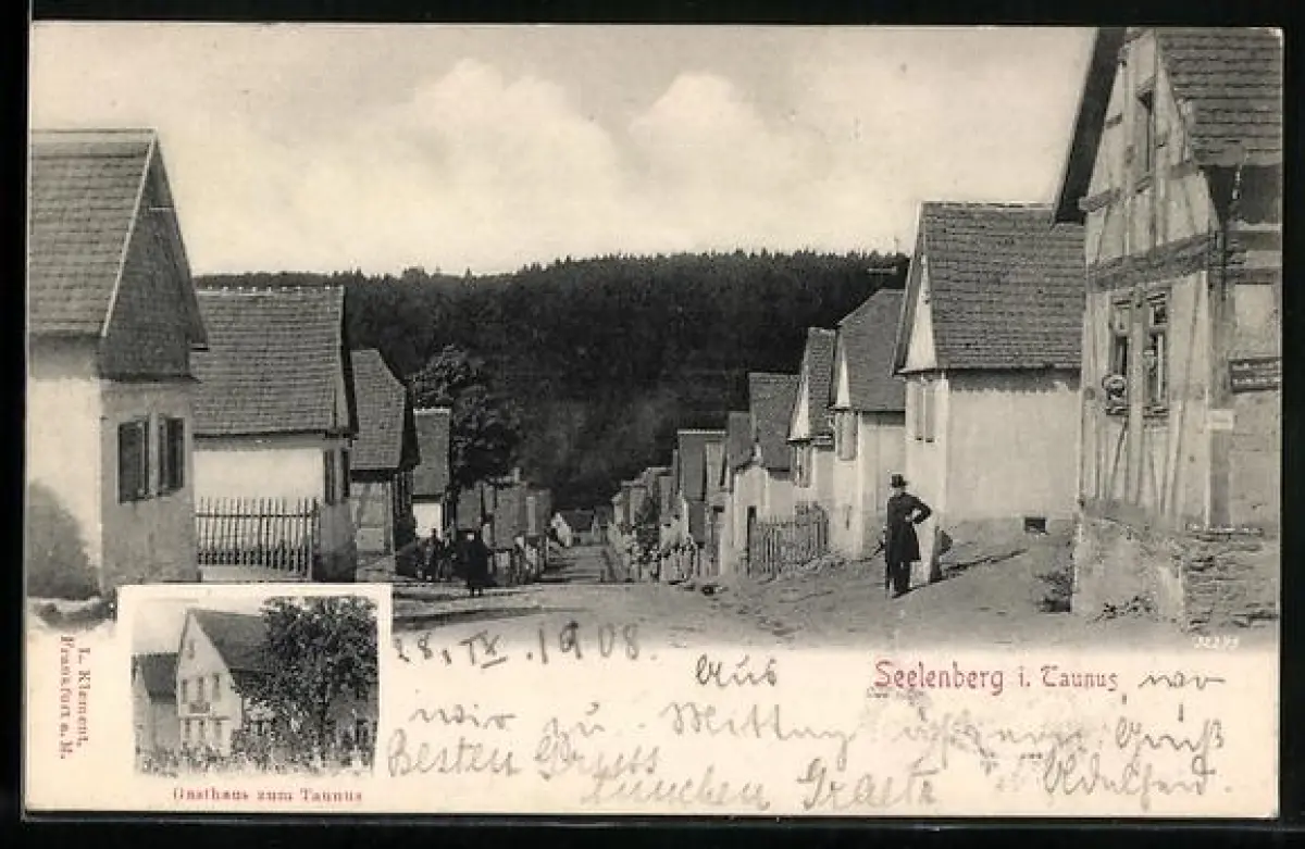 AK Seelenberg i. Taunus, Strassenpartie und Gasthaus zum Taunus