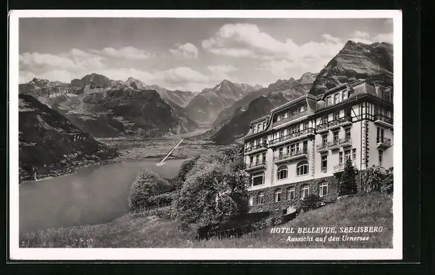 AK Seelisberg, Hotel Bellevue, Aussicht auf den Urnersee