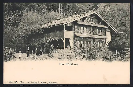 AK Seelisberg, das Rütlihaus mit Besuchern