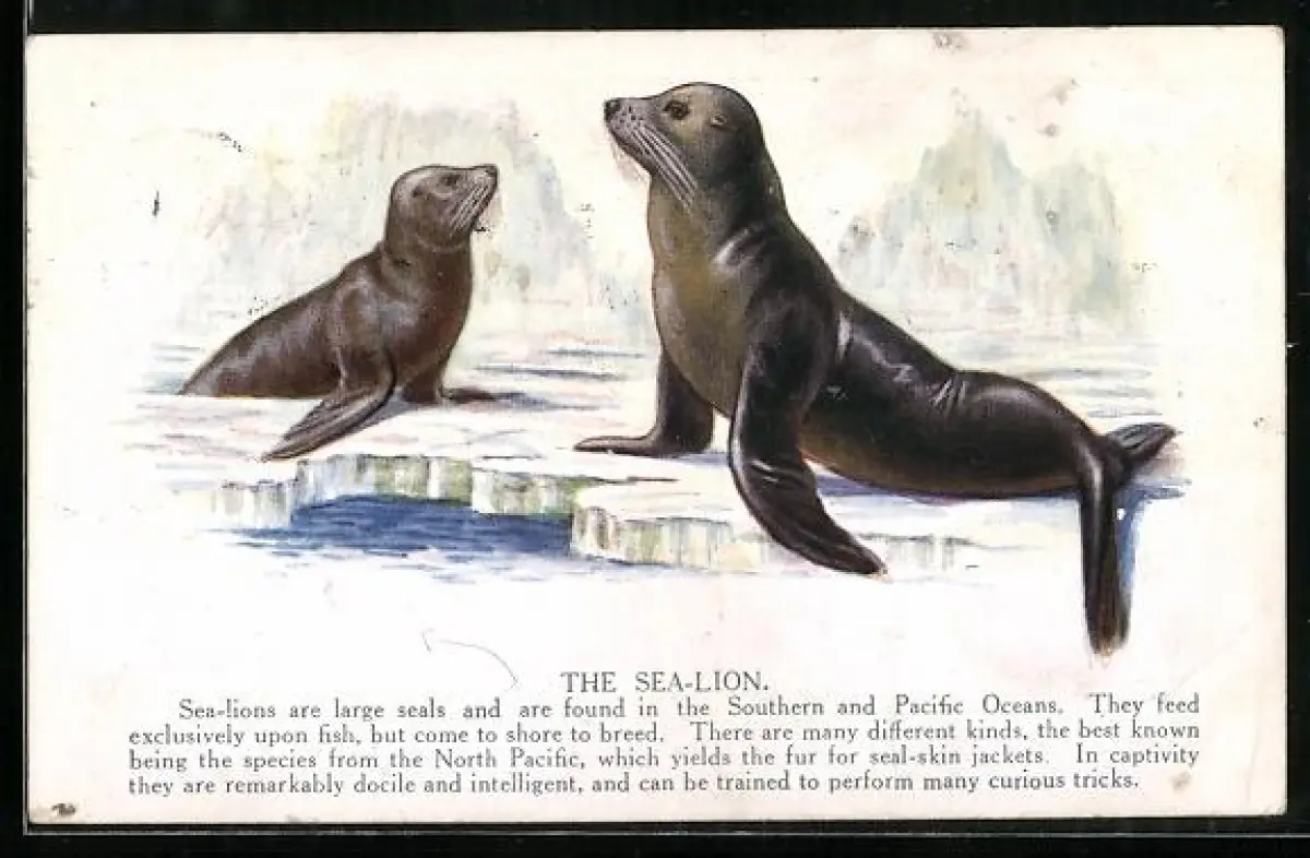 AK Seelöwin mit Jungem auf einer Eisscholle