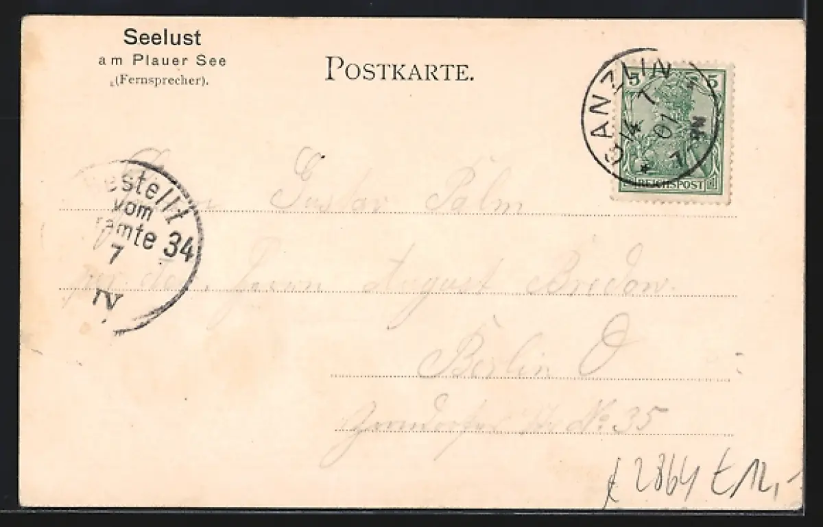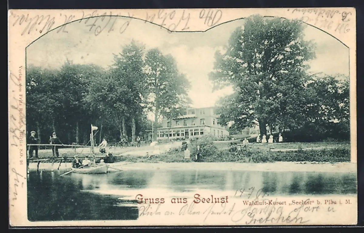 AK Seelust am Plauer See, Uferpartie mit Boot
