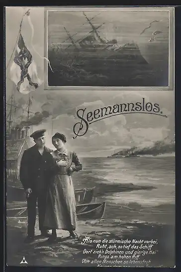 AK Seemannslos, Matrose mit seiner Liebsten, Schiffswrack