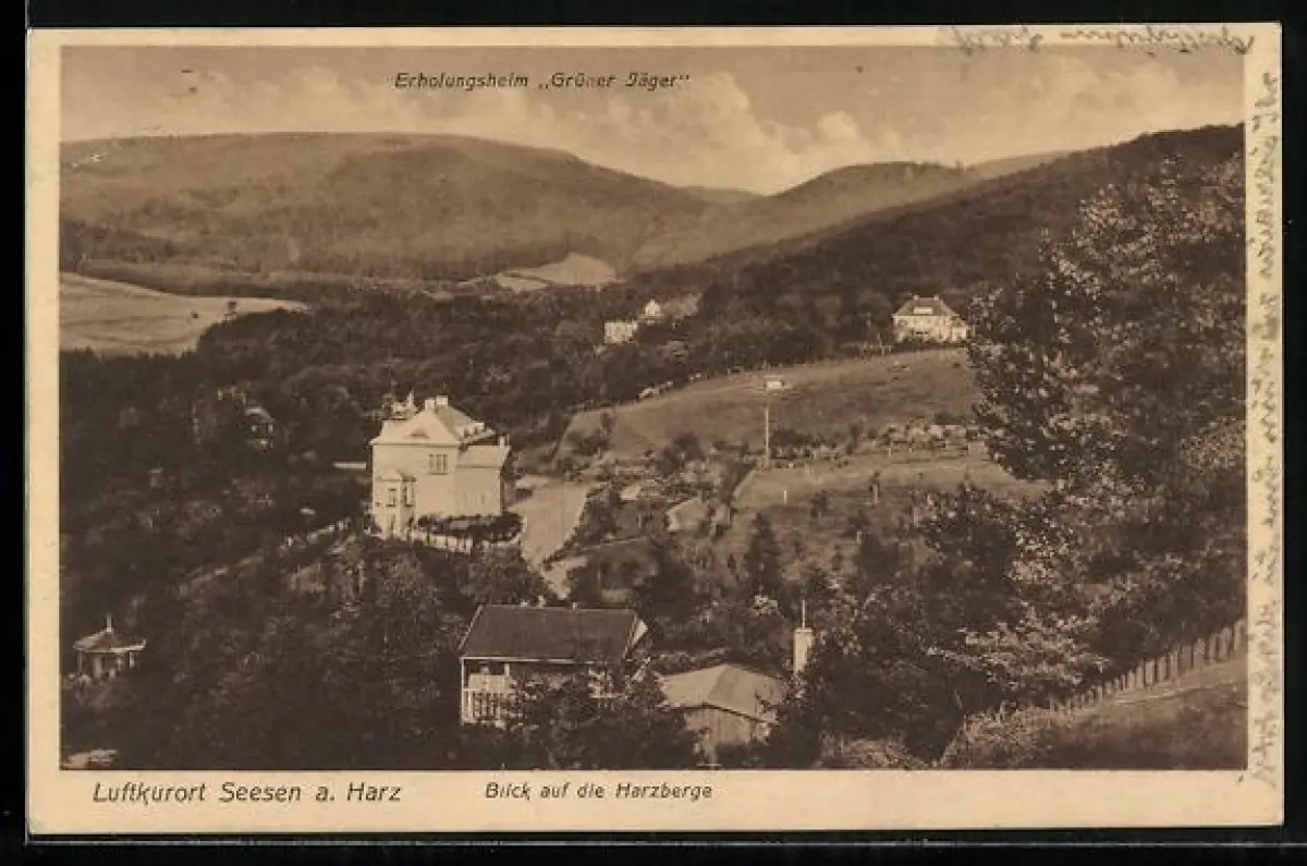 AK Seesen a. Harz, Blick auf die Harzberge mit Erholungsheim Grüner Jäger