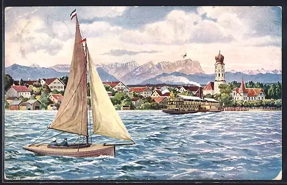 AK Seeshaupt am Starnbergersee, Segelboot unweit des Ufers