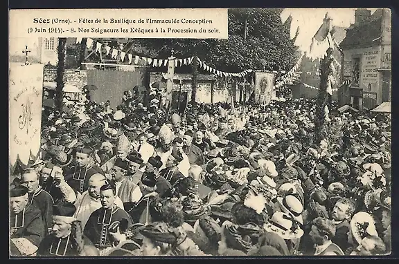 AK Séez, Fêtes de la Basilique de l`Immaculée Conception 1914, Nos Seigneurs les Evêques à la Procession du soir