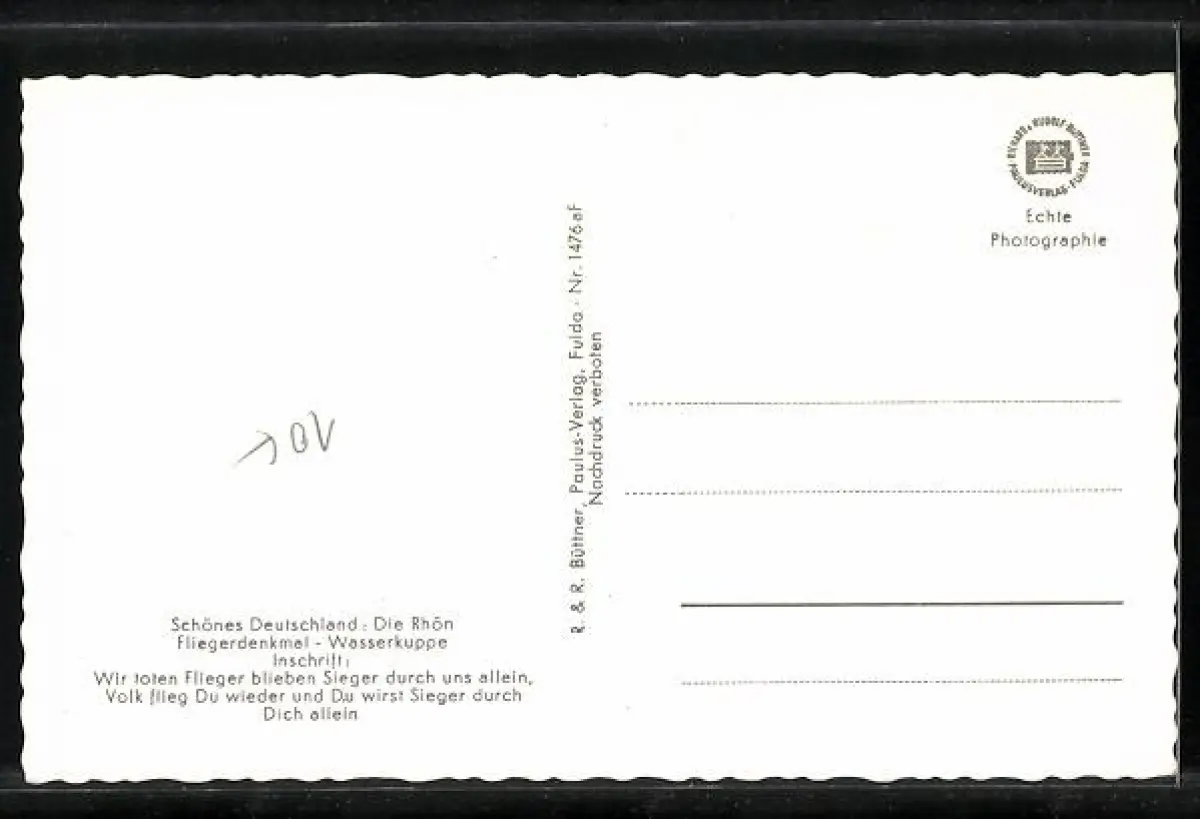 AK Segelflieger am Fliegerdenkmal auf der Wasserkuppe in der Rhön