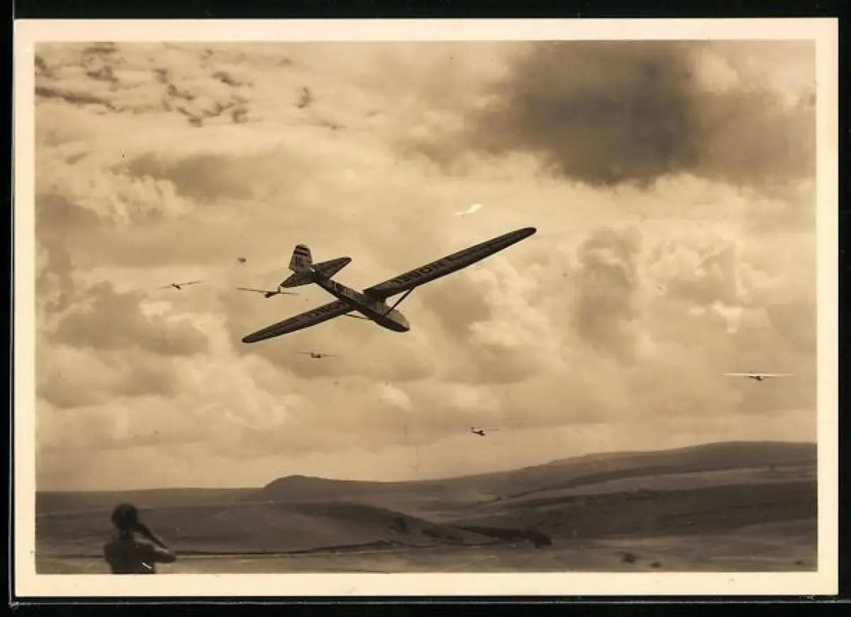 AK Segelflieger im Geschwaderflug, vorn Grunau Baby II