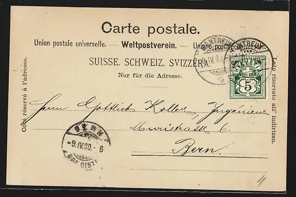 alte Ansichtskarte, gelaufen 1900, guter Zustand