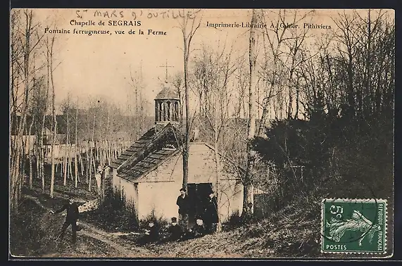 AK Segrais, Chapelle et fontaine ferrugineuse vue de la ferme