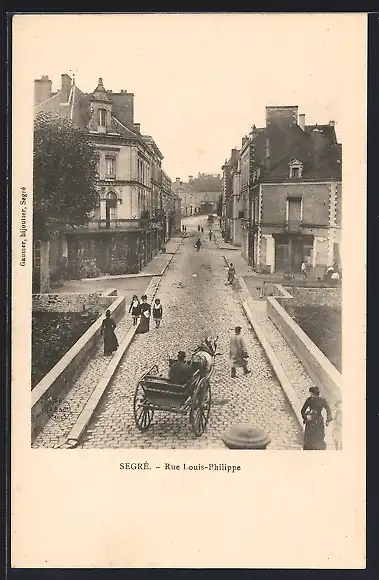 AK Segré, Rue Louis-Philippe avec charrette et piétons