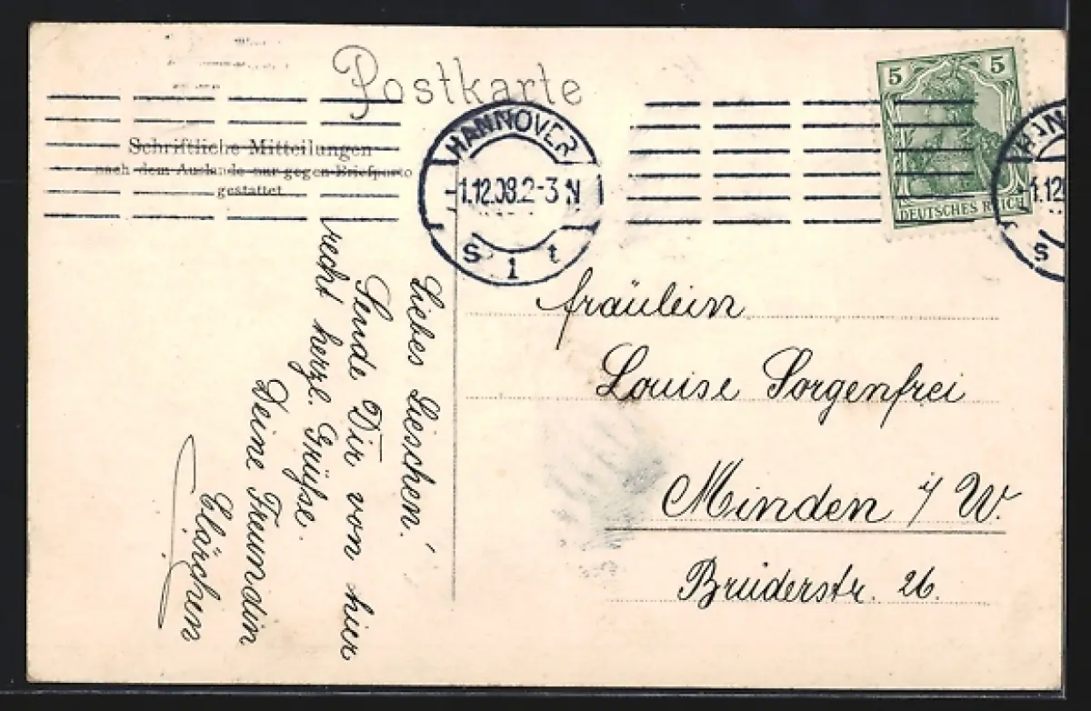 alte Ansichtskarte, gelaufen 1908, Eckknick re. oben, guter Zustand