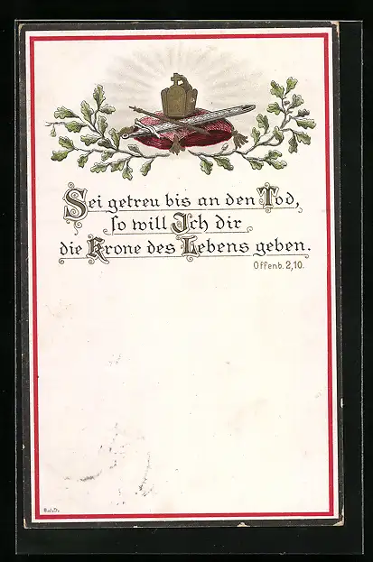 AK Sei getreu bis an den Tod, so will ich dir die Krone des Lebens geben, Offenb. 2, 10, Sinnspruch