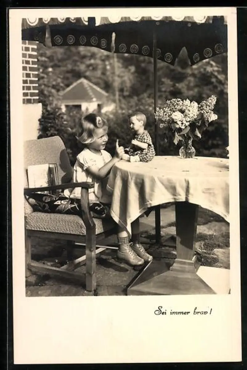 AK Sei immer brav!, Mädchen ermahnt Puppe