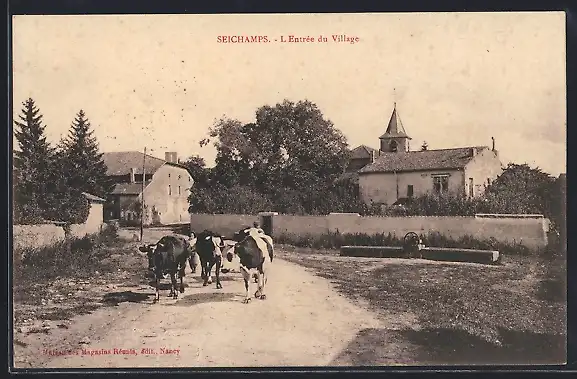 AK Seichamps, L`entrée du village avec troupeau de vaches