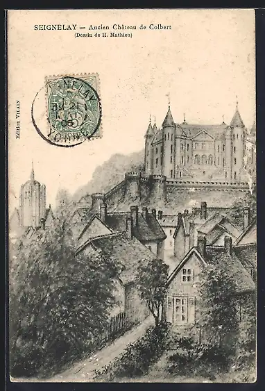 AK Seignelay, Ancien Château de Colbert, Dessin de H. Mathieu