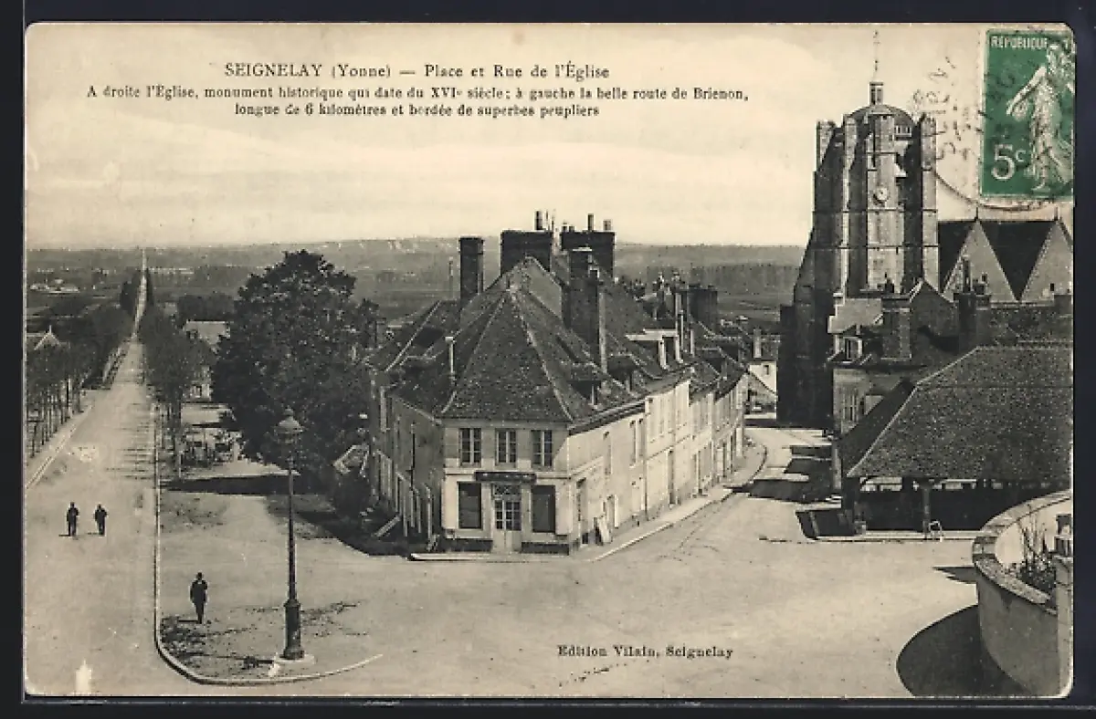 AK Seignelay /Yonne, Place et Rue de l`Église avec monument historique du XVIe siècle