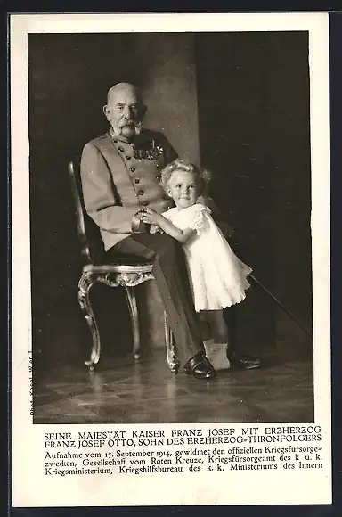 AK Seine Majestät Kaiser Franz Josef I. von Österreich mit Erzherzog Franz Josef Otto, Rotes Kreuz