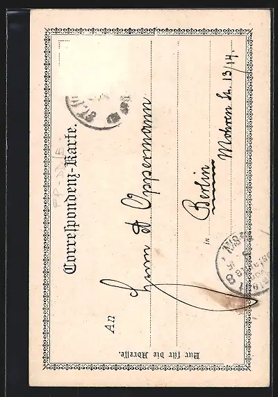 alte Ansichtskarte, gelaufen, Briefmarke entfernt, rückseitig Oberflächenschaden, guter Zustand
