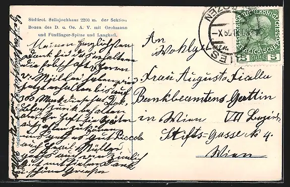 AK Sellajochhaus, Berghütte mit Grohmann und Fünffinger-Spitze und Langkofl