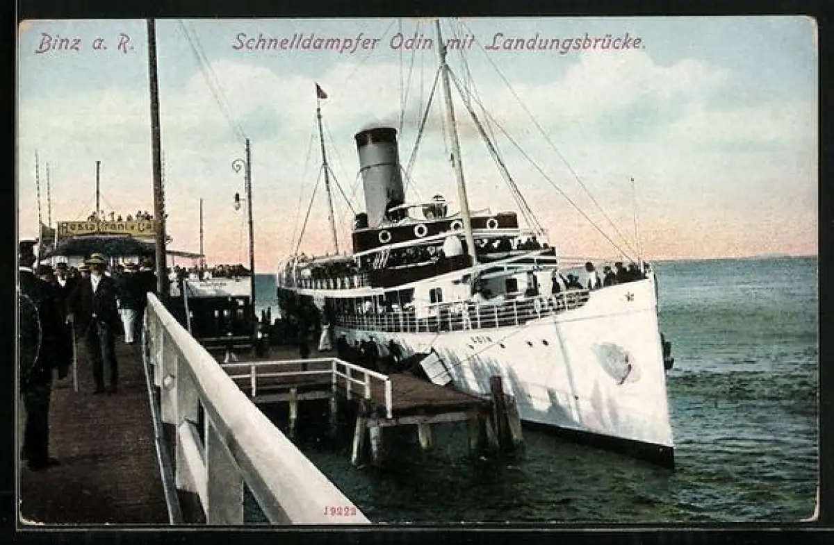 AK Sellin, Schnelldampfer Odin mit Landungsbrücke, Passagierschiff