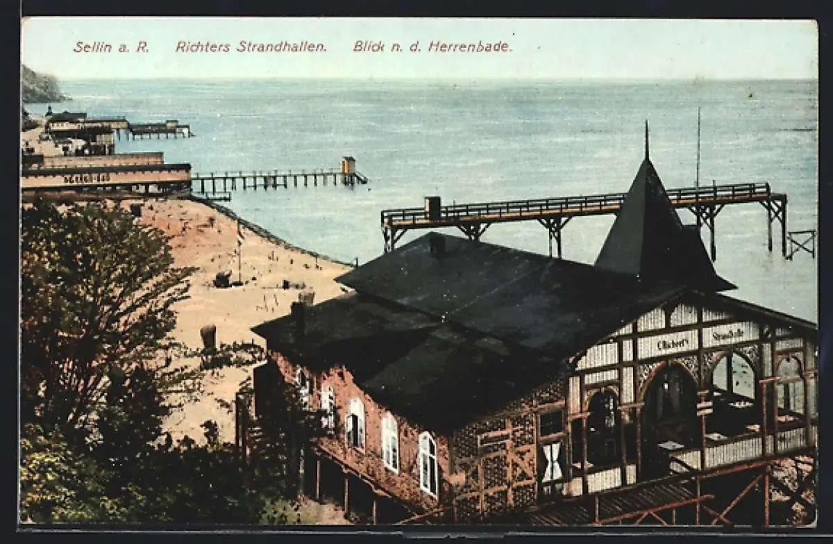 AK Sellin a. R., Richters Strandhallen, Blick n. d. Herrenbade