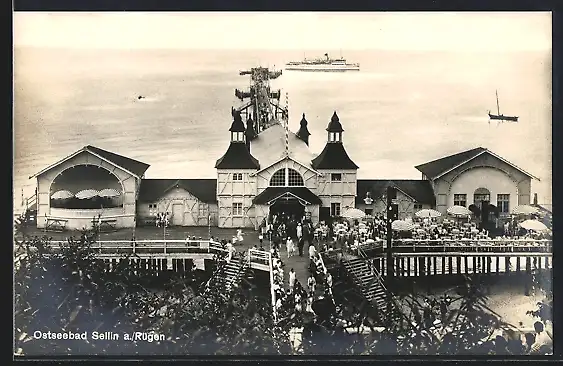 AK Sellin a. Rügen, Die Seebrücke und Dampfschiff
