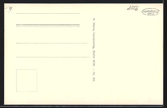 Personenbezogene Daten auf der Rückseite der Karte wurden durch blauen Textmarker unkenntlich gemacht. Die blauen Stellen sind auf die Vorderseite durchgeweicht und wirken sich negativ auf das Postkartenfoto aus