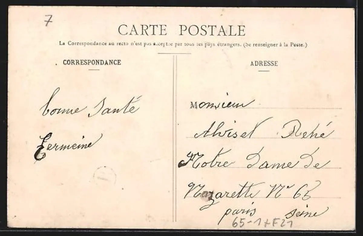alte Ansichtskarte, gelaufen 1907, Bugspur re., Kleberest vorn, guter Zustand