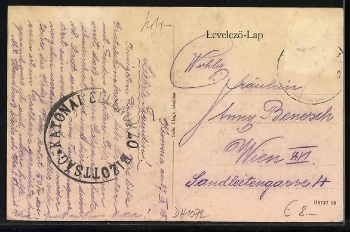 gelaufen 1915, Briefmarke entfernt, rückseitig Oberflächenschaden, Eckknick li. unten, guter Zustand