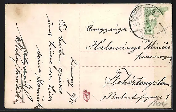 alte Ansichtskarte, gelaufen, Briefmarke entfernt, guter Zustand